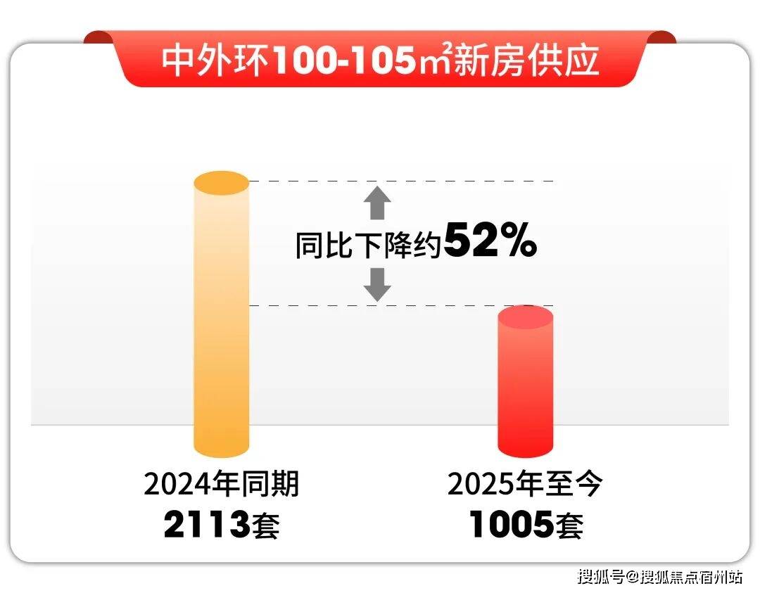 值得一提的还有,自7090政策打消后,市场上新推房源的最小面积遍及提拔至建面约110㎡,以至建面约120㎡,市区百平出头的新房供应锐减。据数据统计2025年至今上海中外环建面约100-105㎡新房供应了1005套,客岁同期曾经供应2113套,同比下降约52%。